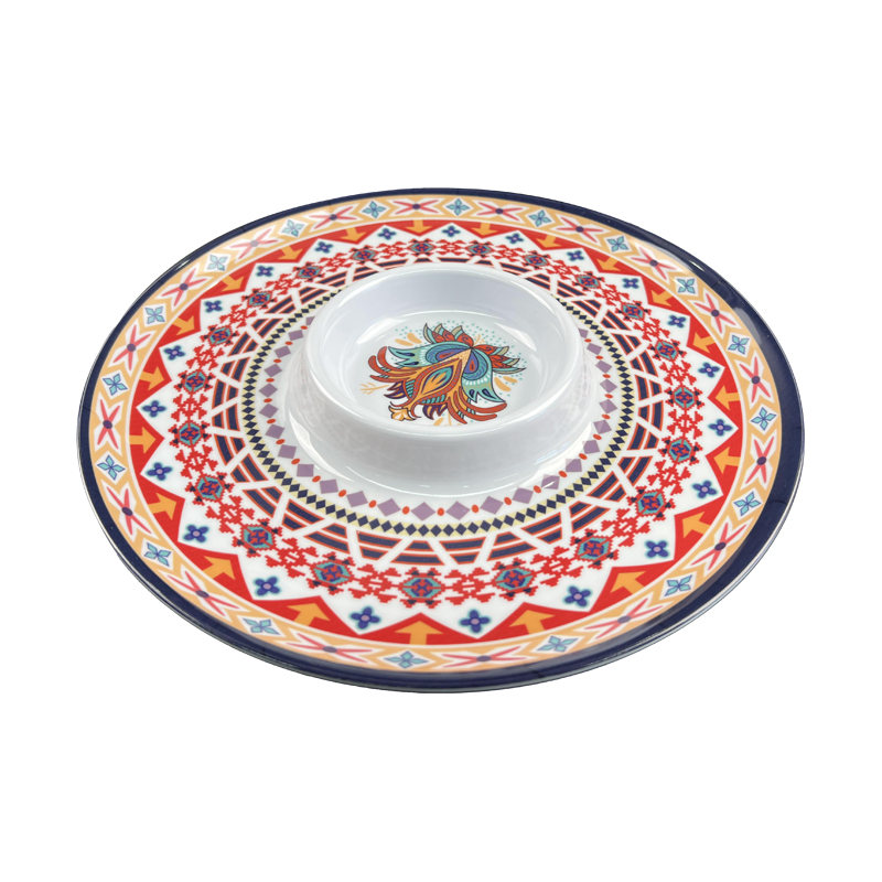 12 inch round melamine serving plate set snacks plates Christmas melamine chip and dip plates