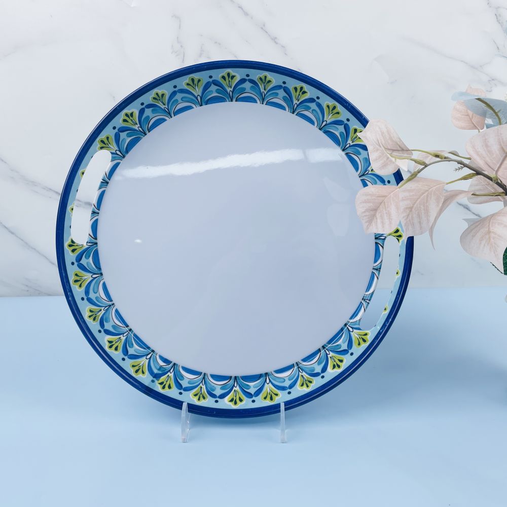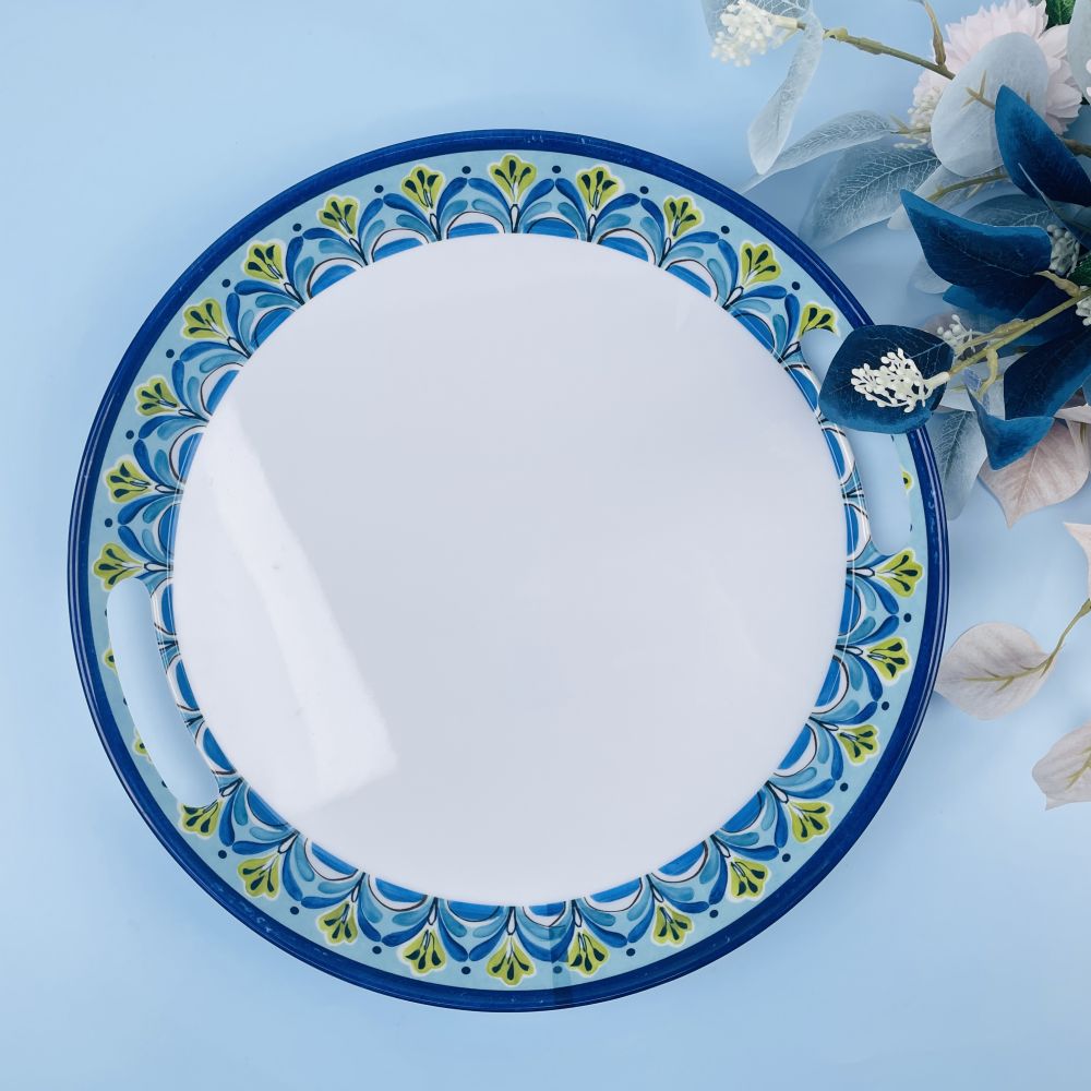 Upgrade your serving experience with our White and Blue Melamine Tray with Handle. Order yours today and add a touch of elegance to your home!