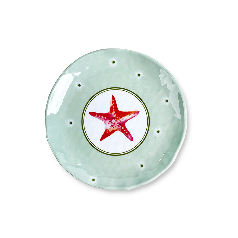 Sakitləşdirici dəniz-yaşıl fonda yerləşdirilmiş, nüvəsində canlı qırmızı dəniz ulduzu olan melamin Dəyirmi Plaka ilə Okean Temalı Plaka ilə sahil zərifliyi dünyasına dalın. Bu, sadəcə bir Restoran Şam yeməyi deyil; bu, okean cazibəsini, fərdiləşdirmə qabiliyyətini və sənaye səviyyəli davamlılığı birləşdirən biznes və evlər üçün çox yönlü bir həlldir.