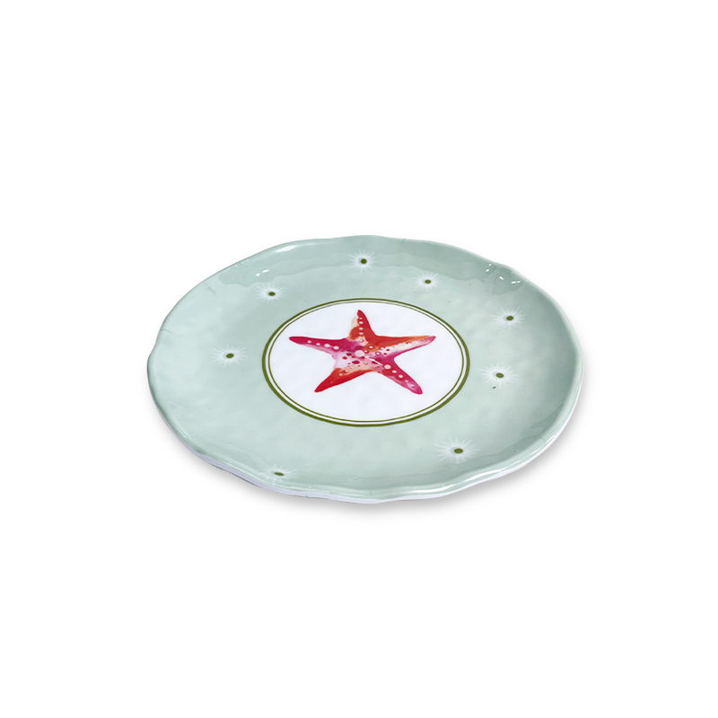 Restoran Otel Ziyafəti və Ev İstifadəsi üçün Topdansatış Xüsusi Melamin Dairəvi Boşqaba Okean Denizyıldızı Dizaynı Yüngül Nahar Boşqabası