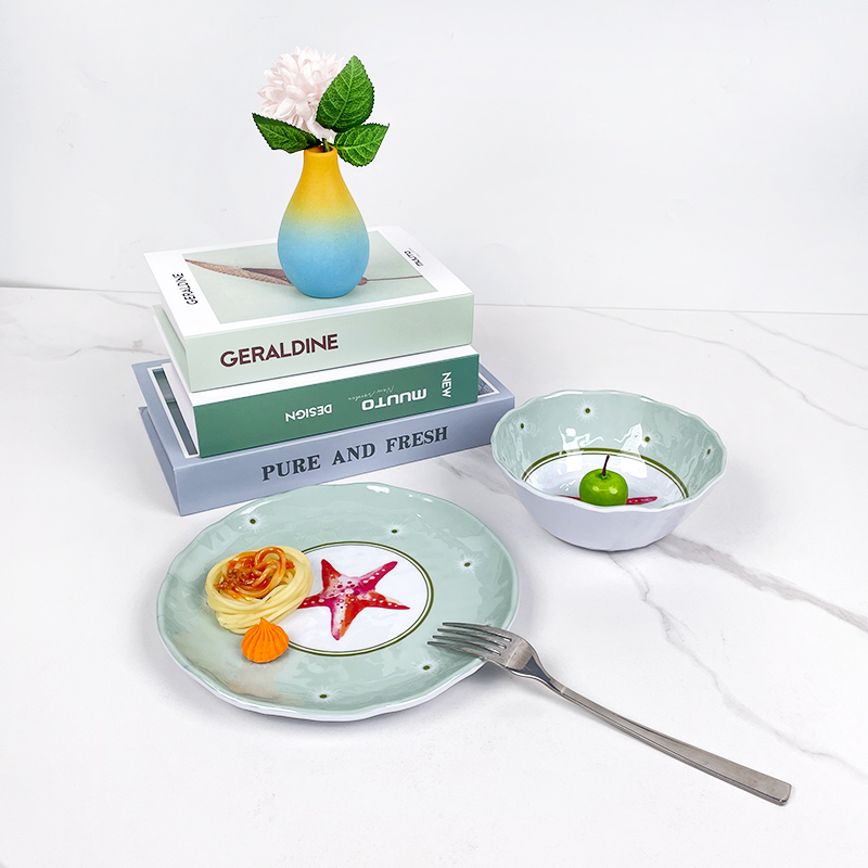 Okean Denizyıldızı Dizaynlı Topdan Satış Xüsusi Melamin Dairəvi Boşqab: Restoranlar, Otellər, Ziyafətlər və Ev İstifadəsi üçün Yüngül, Davamlı yemək qabları
