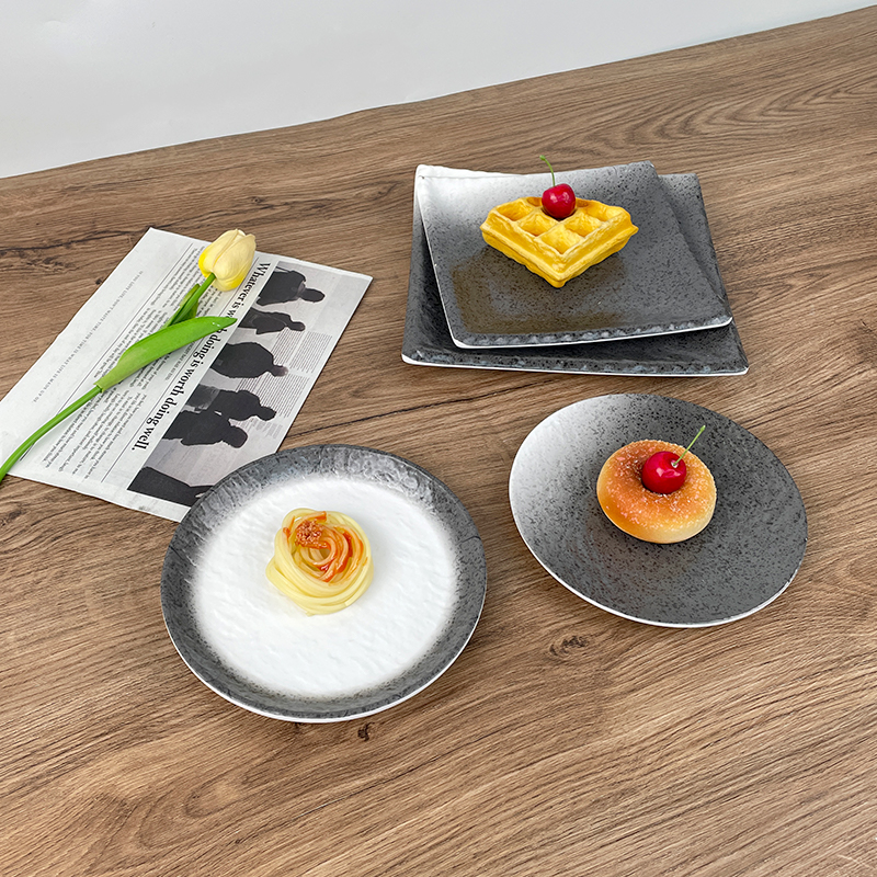 Our Modern Round Melamine Plates feature a sophisticated two-tone gradient design, with a textured black rim transitioning into a bright white center. This minimalist, contemporary aesthetic complements every menu style, from fine dining to casual bistros, making the plates ideal for: