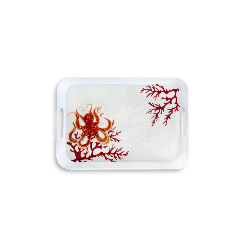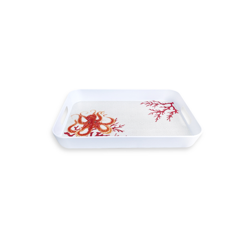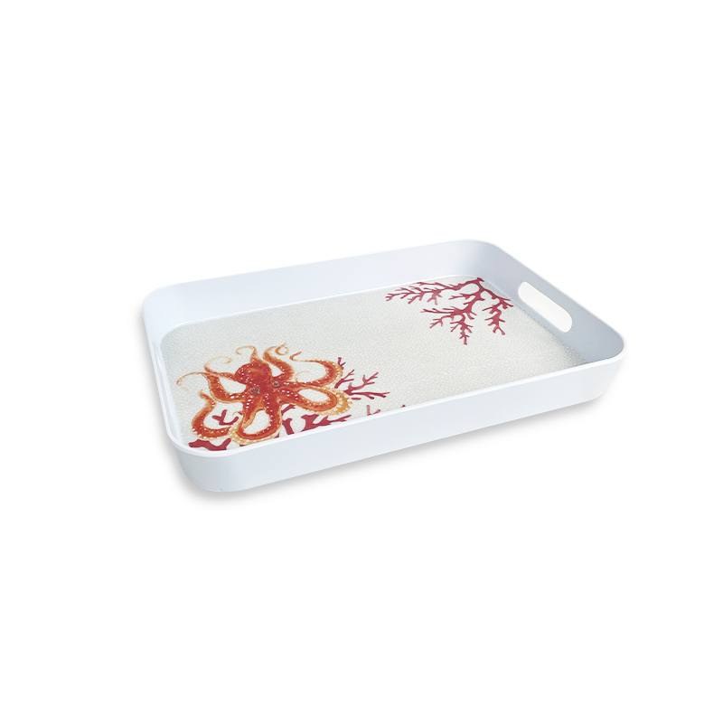 Whether you’re stocking up on Wholesale Melamine Tray for your business or adding a stylish Rectangle Serving Tray to your home, this octopus-coral print piece blends safety, style, and practicality perfectly.