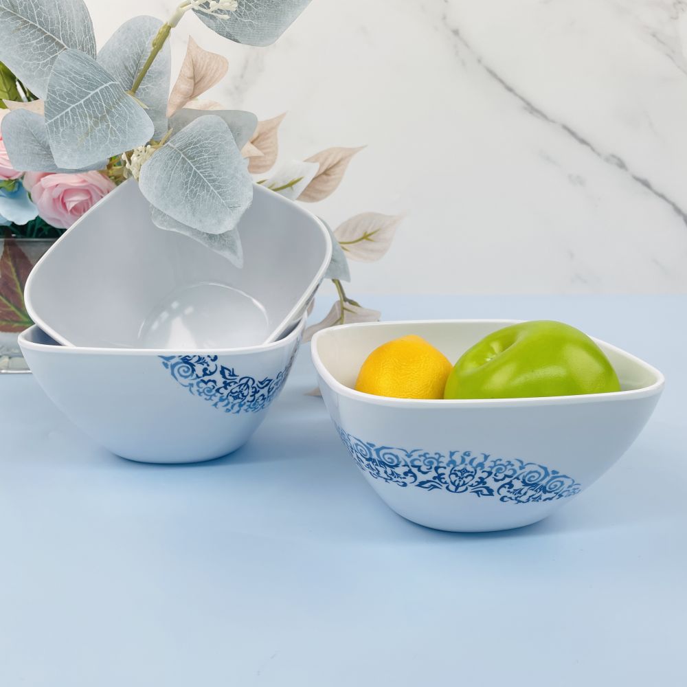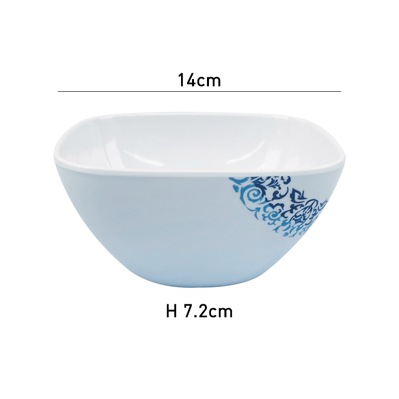 The White Melamine Square Bowl is a versatile and durable dining essential that's perfect for indoor and outdoor use. Its clean white color adds a touch of elegance to any table setting, making it an attractive choice for serving a variety of dishes. Made from high-quality melamine material, this bowl is lightweight, shatterproof and scratch-proof, making it a practical choice for everyday use. It is also suitable for bulk purchase of melamine bowls and can be customized through OEM or ODM services to meet specific design and branding requirements. Its spacious design provides ample space to serve a variety of foods, making it a practical and versatile option for a variety of dining occasions.