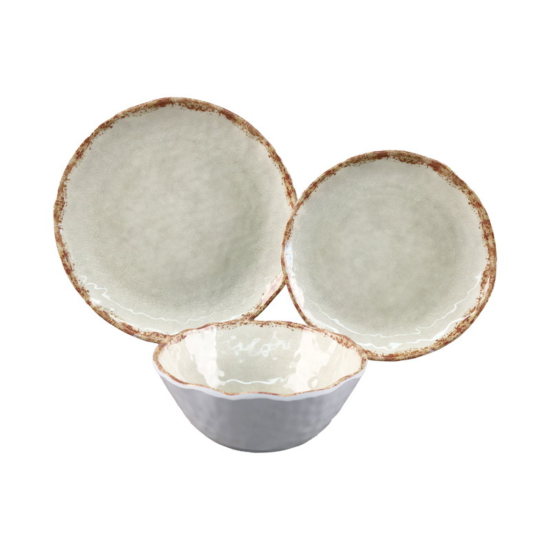 China 3pcs melamine houseware with dinner plate, salad plate and dinner bowl