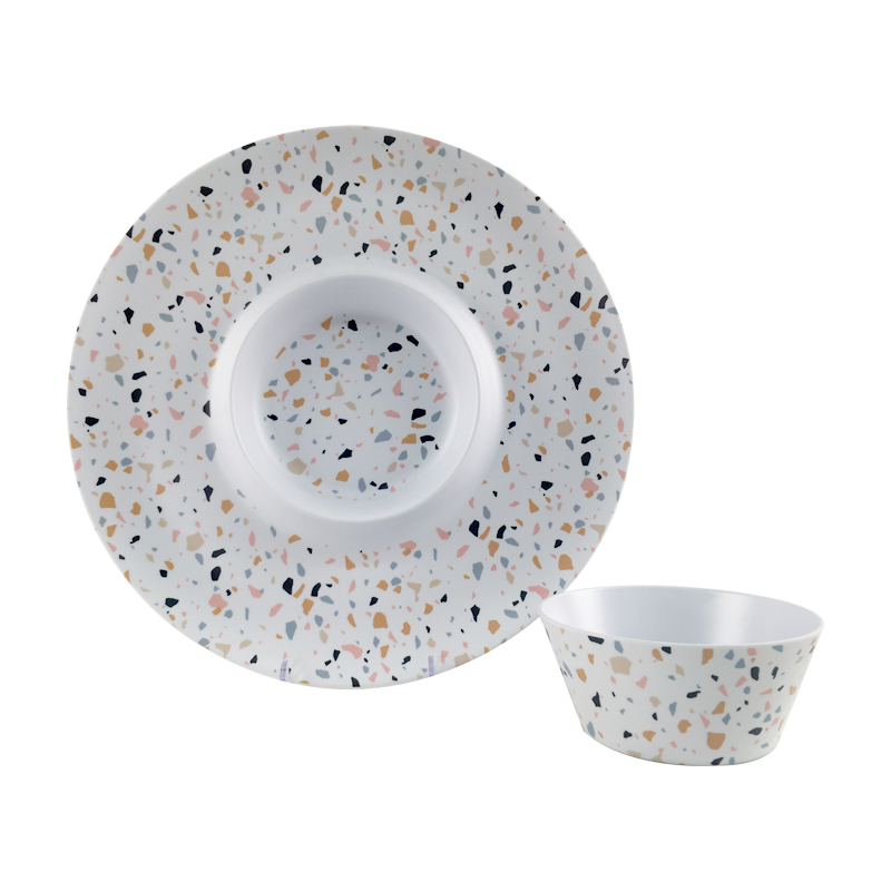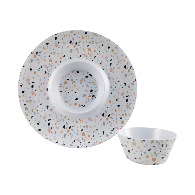 China Cheap price Dinnerware Set Melamine Indian Style - Newly Designed Series Terrazzo design Series Kitchenware Product Bamboo Fiber Plate And Bowl – BECO Detail: