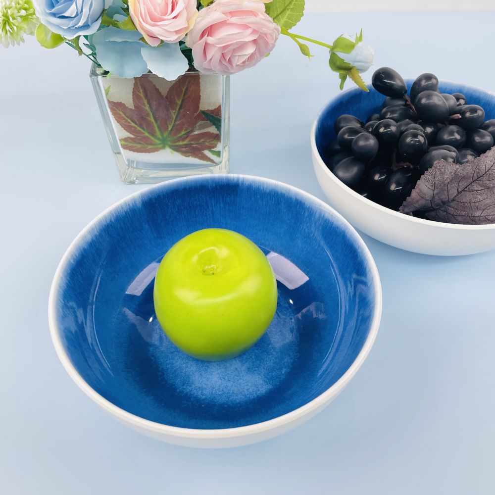 This blue and white melamine bowl is a versatile and eye-catching addition to any tableware collection. Made from high-quality melamine, it offers the perfect blend of durability and style. The vibrant blue and white design adds a touch of elegance to any dining setting, making it ideal for both casual and formal occasions. As a Chinese export melamine bowl, it meets strict quality standards and is suitable for wholesale purchasing. Its lightweight and shatterproof construction makes it a practical choice for both indoor and outdoor use. Whether used to serve salads, snacks or as a garnish, this melamine bowl is a must-have for those looking for a combination of functionality and beauty.