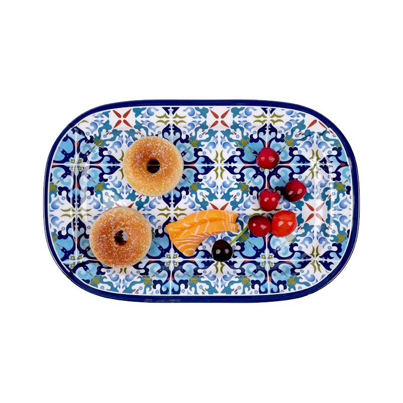 China wholesale plastic melamine large serving rectangular platter full design
