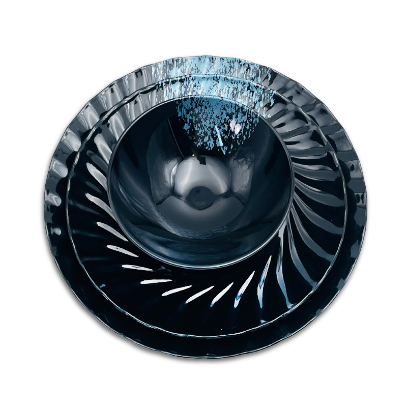 For Japanese restaurants, sushi bars, and ramen shops, sourcing Bulk Japanese Style Dishes that marry authentic aesthetic, unbreakable durability, and food-safe functionality is the key to elevating service and cutting operational costs. Our Factory Wholesale Black with Blue Splash Swirl Embossed Melamine Dinnerware Set delivers on all fronts—blending dramatic black-and-blue artistry, intricate swirl embossing, and commercial-grade melamine resilience. As premium Unbreakable Food Grade Dishes and essential Japanese Style Dinnerware Set, this Black Melamine Set (also known as Swirl Embossed Melamine Plates, Bulk Swirl Embossed Bowls, and Wholesale Restaurant Melamine Plates) is the ultimate bulk solution for venues specializing in sushi, ramen, and modern Japanese cuisine worldwide.