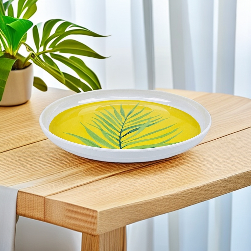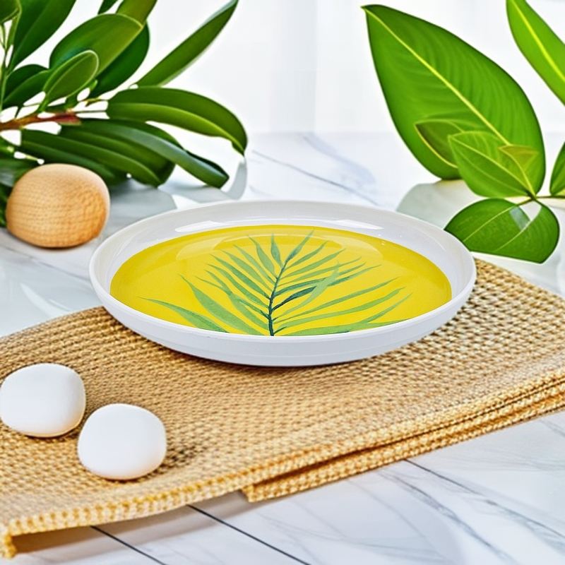 Creative Green Leaf Pattern Yellow Decal Melamine Dinner Plates Wedding Charger Plate for Home Use