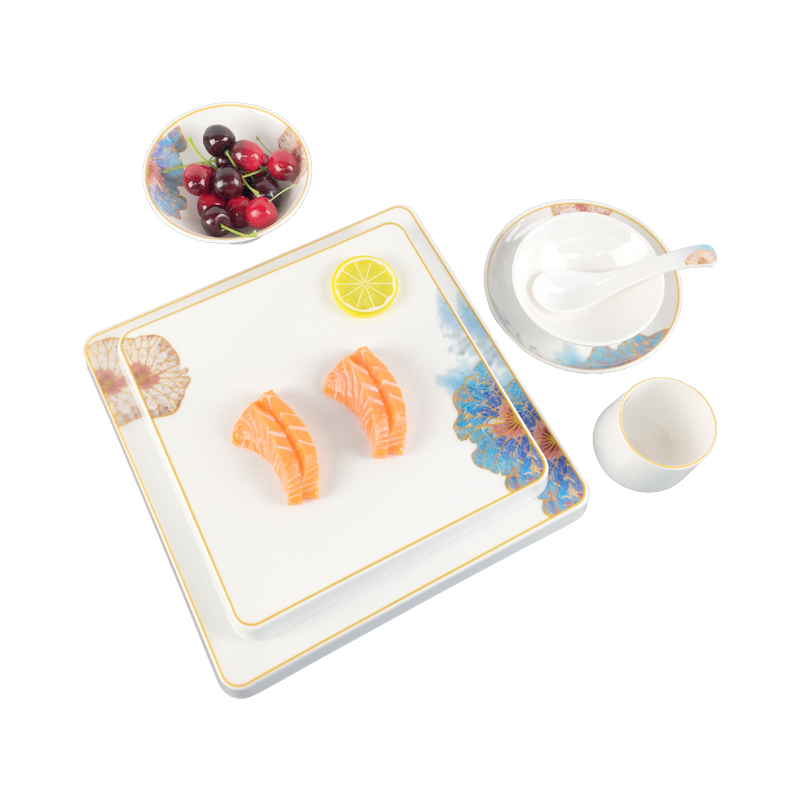 Custom Colorful Elegant Square Irregular Kitchen Dinner Set Dinnerware Melamine Plate Tableware For Restaurants