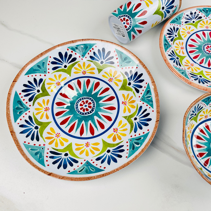 This custom floral melamine dinner plate is a stunning and customizable addition to any dining experience. Made from high-quality melamine, it’s the perfect blend of durability and personalization. The beautiful floral design is inspired by Chinese patterns and adds elegance to any table setting. As a custom melamine plate from China, it can be customized to specific design and size requirements, making it ideal for businesses and individuals who want to create their own unique tableware. Its lightweight and shatterproof construction makes it suitable for indoor and outdoor use, while its food-safe and easy-to-clean properties ensure practicality and convenience. Whether used for everyday meals or special occasions, this custom melamine plate is a versatile and attractive option for those looking for a combination of customization and functionality.