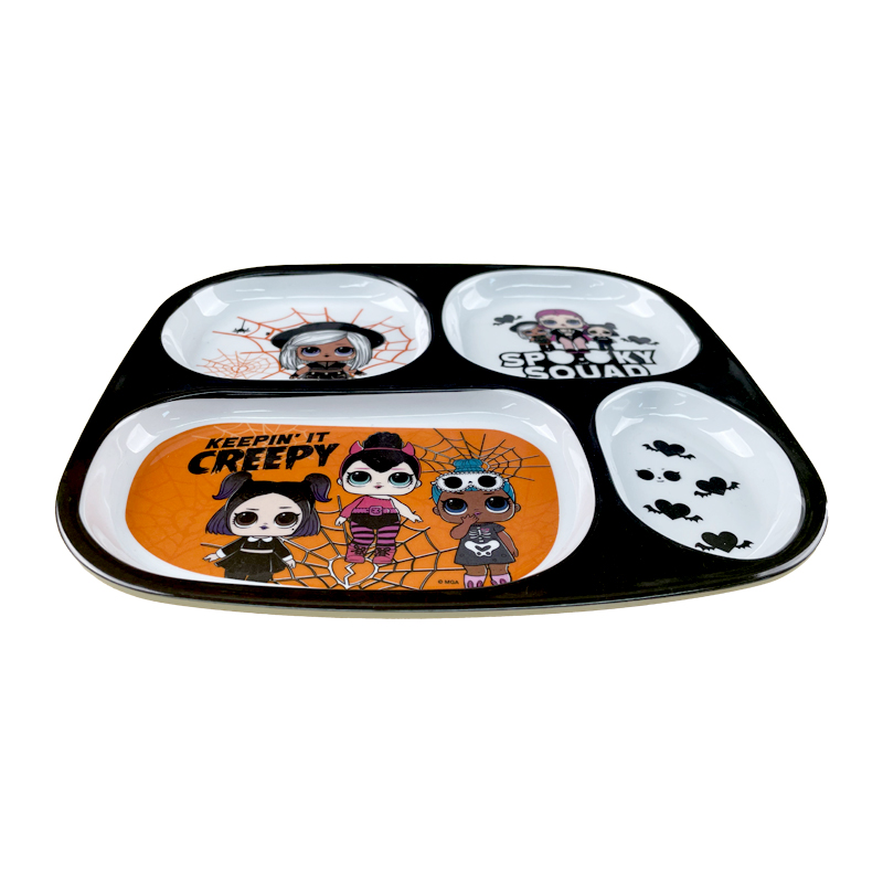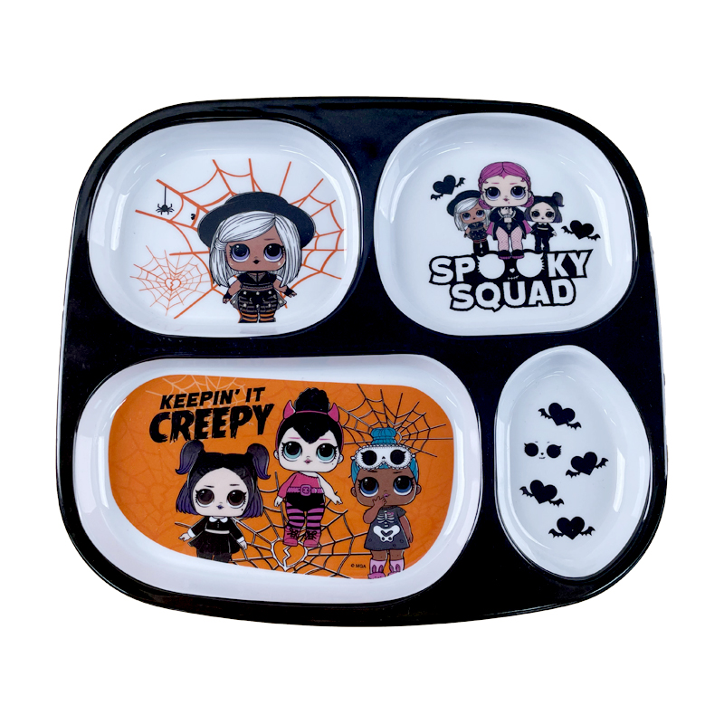 Custom Logo Eco Friendly Unbreakable Baby Divided Training Plate Food Grade Kids Child Feeding Dish Plates Baby Halloween Melamine Plate