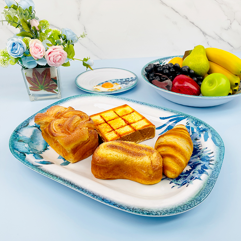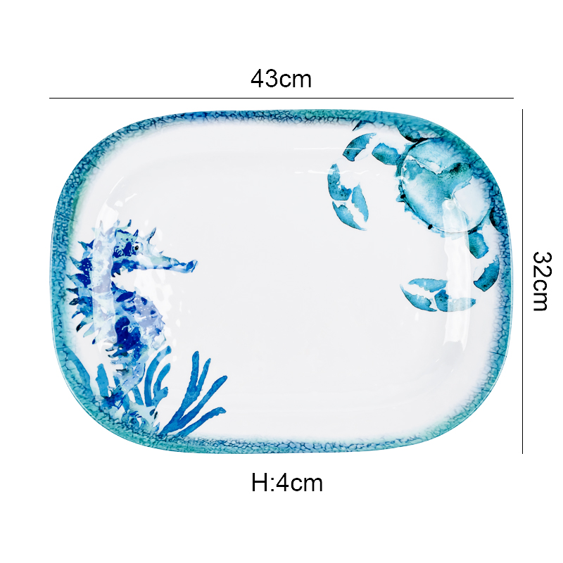 Custom printed ocean design rectangular hard plastic large tray melamine food serving trays