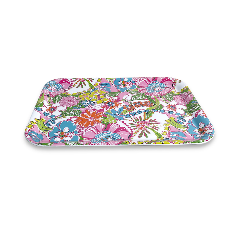 Custom Vibrant Floral Print Melamine Rectangular Serving Tray – Colorful Decorative Tray for Home & Restaurant Use