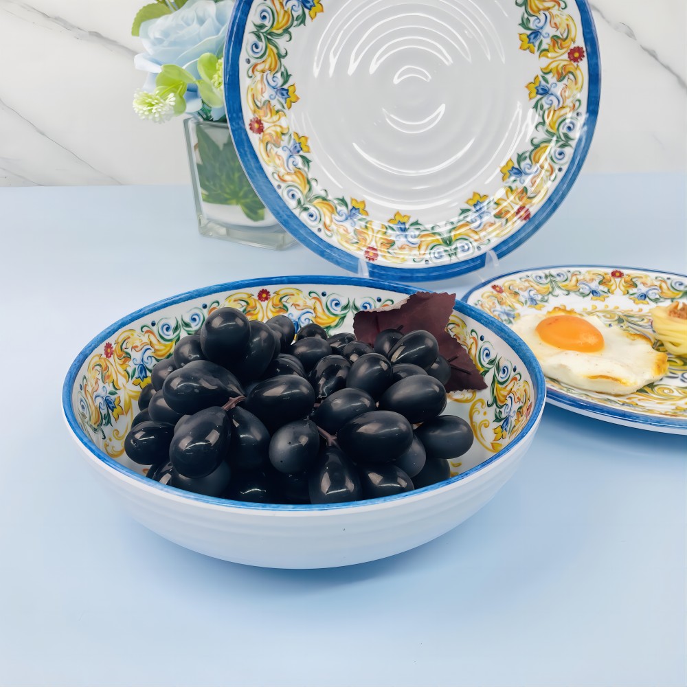 Customized Accept Vintage Style Bowl with Flower Pattern Unbreakable Melamine Bowl for Home and Kitchen