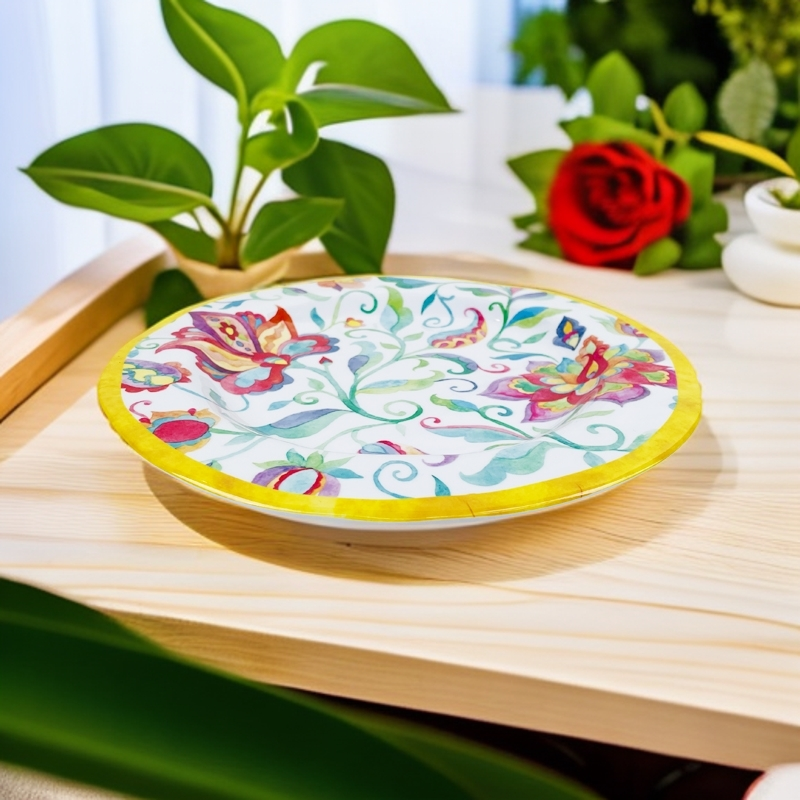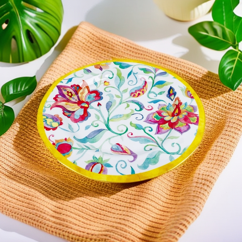 The Customized Floral Melamine Serving Plate combines style, durability, and functionality, making it an ideal choice for both everyday use and special occasions. Designed as part of high-quality melamine flower dinnerware, these plates feature vibrant floral prints that can be tailored to suit your preferences, offering the perfect solution for custom printed dinnerware. Crafted from premium melamine, these large plastic plates are lightweight, unbreakable, and easy to handle, ensuring they withstand frequent use. Perfect for those seeking cheap plastic plates without compromising on style, these plates are available in bulk plastic plates options for restaurants, parties, or catering services. Durable and elegant, this melamine unbreakable dinnerware elevates any dining setup while offering excellent value and versatility.