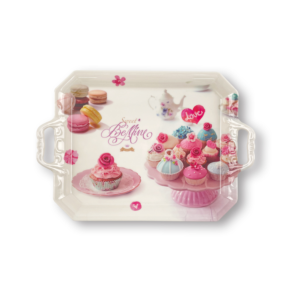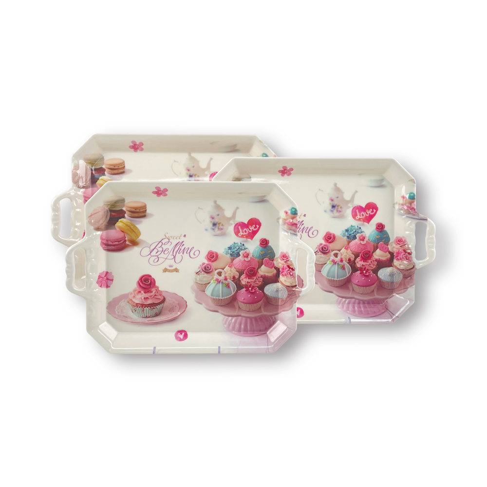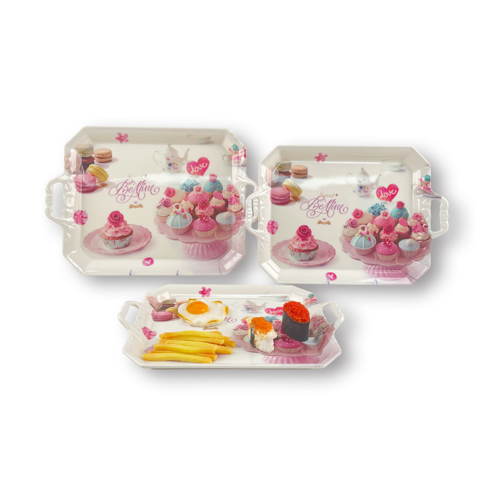 Customized Printing Cake design Restaurant Plastic Melamine Bread Cake Food Serving Tray For home birthday party