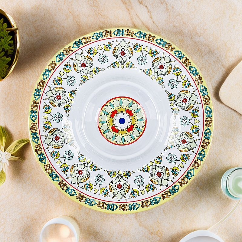 The Divided Melamine Tray is a versatile and durable serving solution for all your snack and appetizer needs. This chip and dip plate features a thoughtfully divided design, making it perfect for serving chips, dips, sauces, and snacks in a clean and organized way. Whether it's for casual family meals, parties, or special occasions, this chip and dip tray ensures easy access to a variety of treats, enhancing the dining experience.