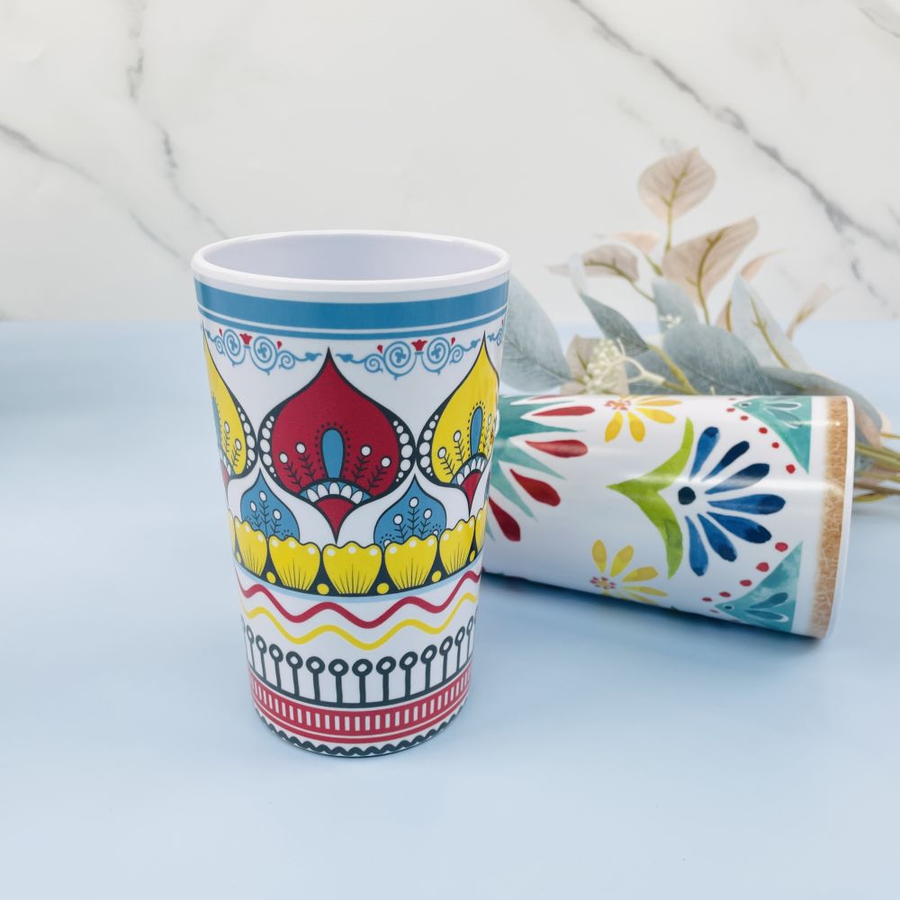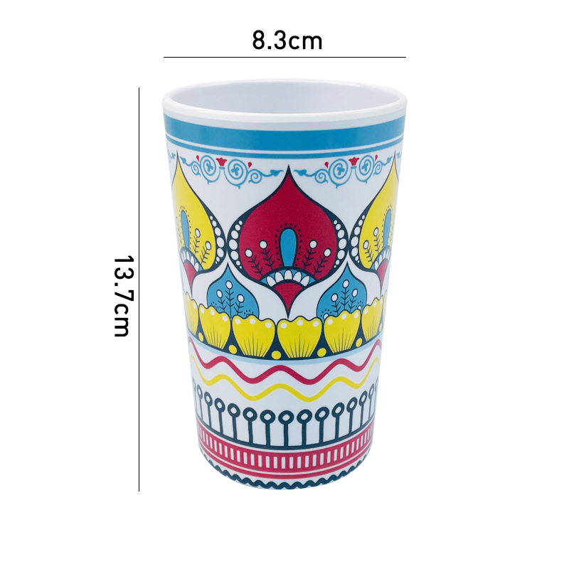 Melamine Flower Cups are a charming and elegant addition to any table setting, featuring delicate floral designs that add a touch of sophistication to any occasion. Its durable melamine construction ensures long-lasting use and is suitable for both indoor and outdoor dining. The mug is also dishwasher safe, making it convenient and easy to maintain. The stylish and versatile design of the Melamine Flower Cup makes it the perfect choice to add a touch of beauty to any kitchen or dining room collection. With its high-quality construction and attractive floral pattern, this mug is a delightful choice for those looking for practical yet stylish drinkware.