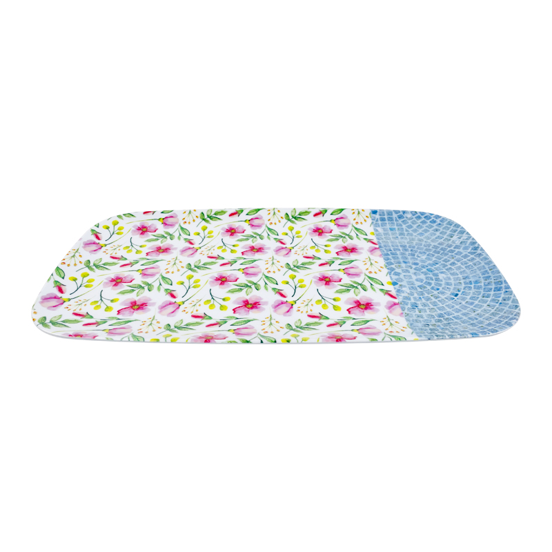 Factory-made high quality colorful flower rectangular melamine serving tray