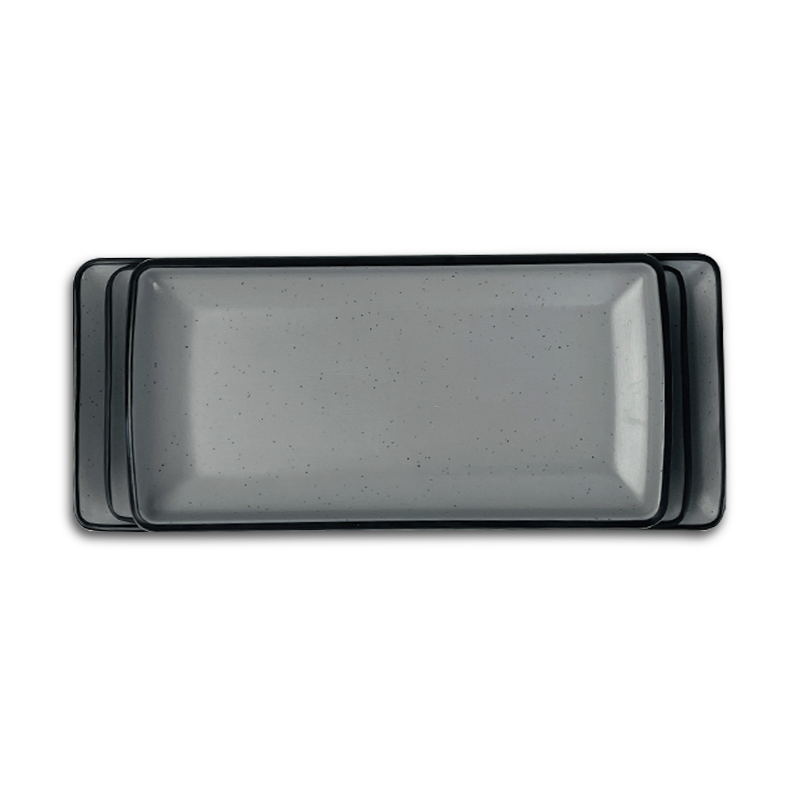 Factory Wholesale Grey Speckled Rectangular Melamine Serving Plates – Unbreakable Food Grade Custom Logo Dishes for Restaurants & Catering in Bulk