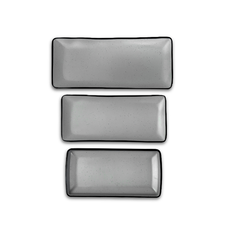 Our Grey Speckled Rectangular Plates feature a subtle, organic grey speckled texture with a contrasting dark border—creating a warm, contemporary backdrop that elevates any dish. The neutral grey hue complements all types of cuisine, making them perfect for: