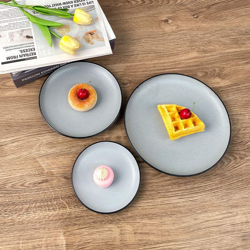 Our Two-Tone Round Plates feature a striking contrast between a light frosted center and a dark outer rim—creating a vintage-inspired, retro aesthetic that elevates any dish presentation. The neutral two-tone palette complements all types of cuisine, making them perfect for: