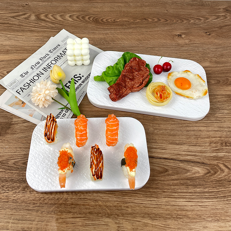 Our White Stone Texture Melamine Plates (White Stone Texture Plates / White Plates) feature a subtle, tactile stone-like finish that mimics the warmth of handcrafted ceramic, paired with a sleek Square Plates silhouette softened by gentle rounded edges. The crisp white backdrop lets vibrant buffet dishes, from hot entrees to chilled salads, take center stage, while the textured surface adds a non-slip grip for practical serving. This understated elegance elevates any buffet spread or restaurant table setting, making it ideal Buffet Restaurant Plates that impress guests while maintaining a cohesive, professional look.
