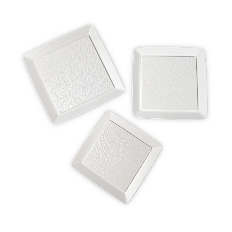 Our White Stone Texture Melamine Plates (White Stone Texture Plates / White Plates) feature a subtle, tactile stone-like finish that mimics the organic warmth of handcrafted ceramic, paired with a sleek Square Plates silhouette. The crisp white backdrop creates a minimalist canvas that lets the vibrant colors and textures of your signature dishes—from gourmet mains to artisanal appetizers—take center stage, making them ideal for modern restaurants, sushi bars, and cafes aiming for a sophisticated, uncluttered look.