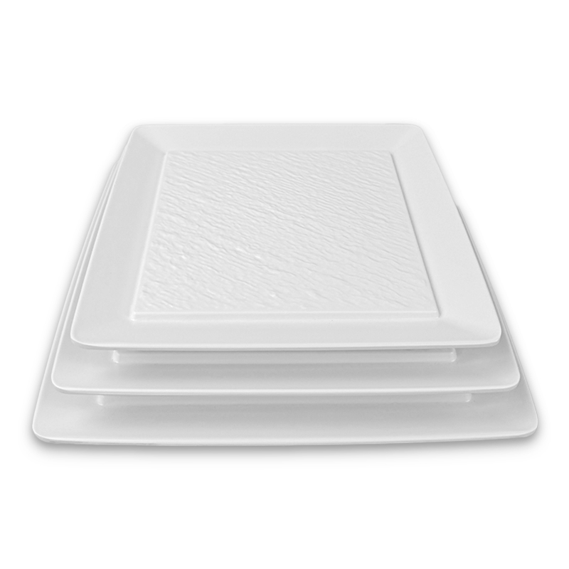 Factory Wholesale White Stone Texture Square Melamine Dinner Plates – Custom Logo Unbreakable Food Grade Dishes for Restaurant Service in Bulk