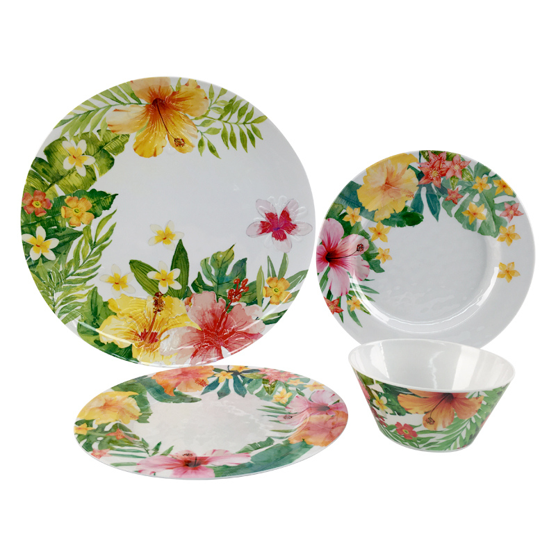 Flower Pattern Melamine Tableware Set Suitable for Family Use Customized Melamine Dinner Ware Top Selling 4 Pieces Cutlery Set