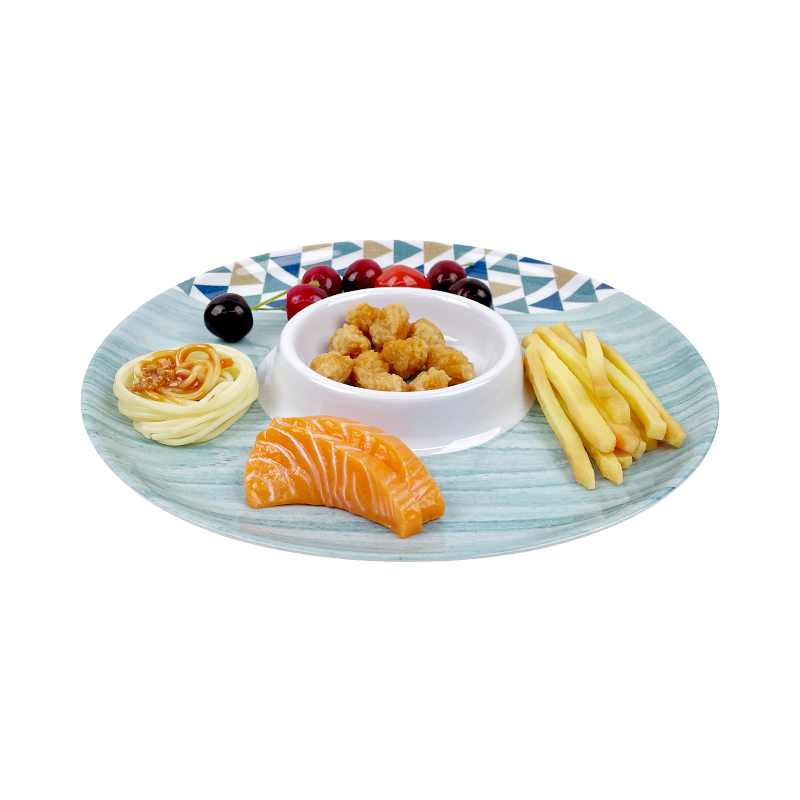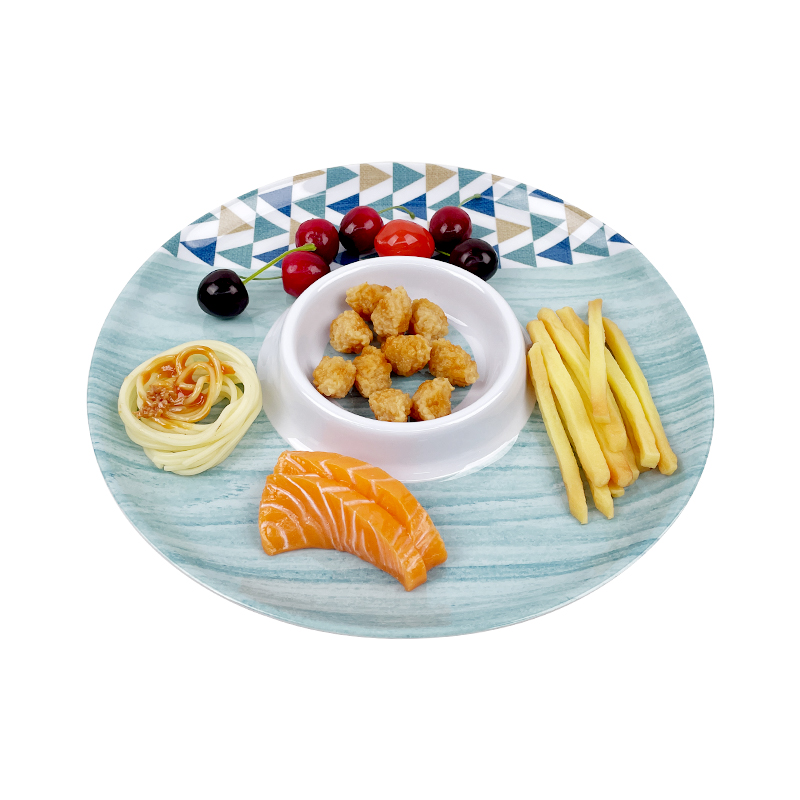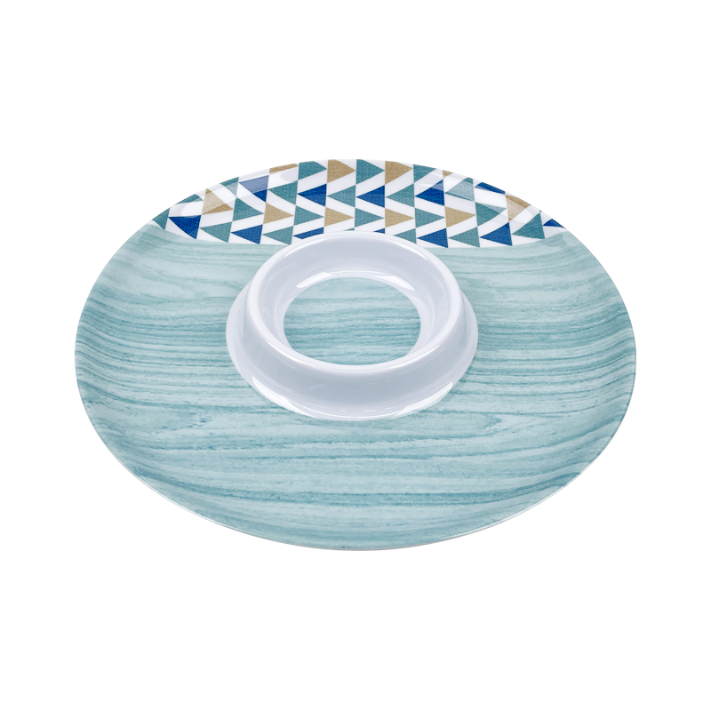 Free Sample Snack Food Serving Trays Custom Made Big Round Plastic Safe Food Grade Melamine Dip And Chip Tray