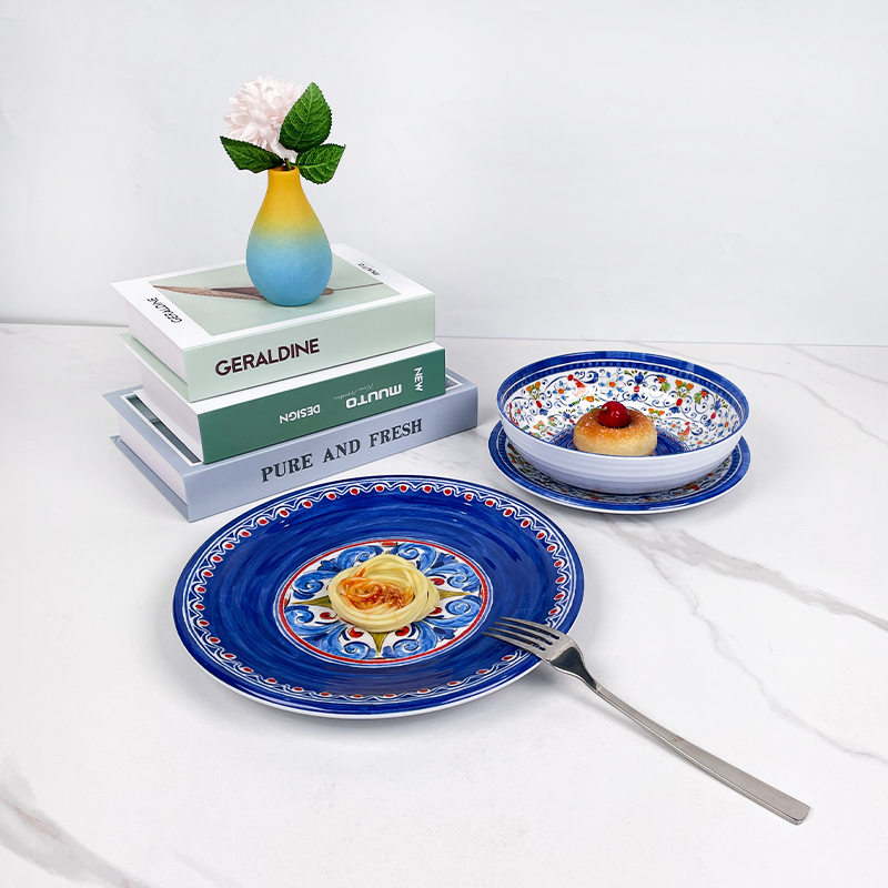 Seata Briosgaidean-bìdh Melamine Flùrach air am Peantadh le Làimh Meadhan-thìreach: Eireachdas Gnàthaichte airson Taigh-bìdh & Biadh Dachaigh
