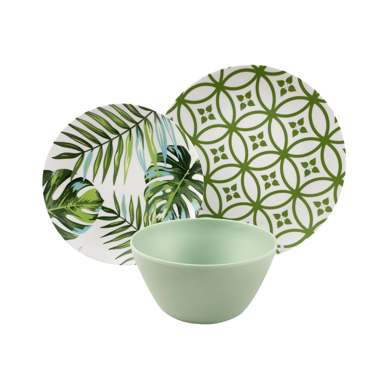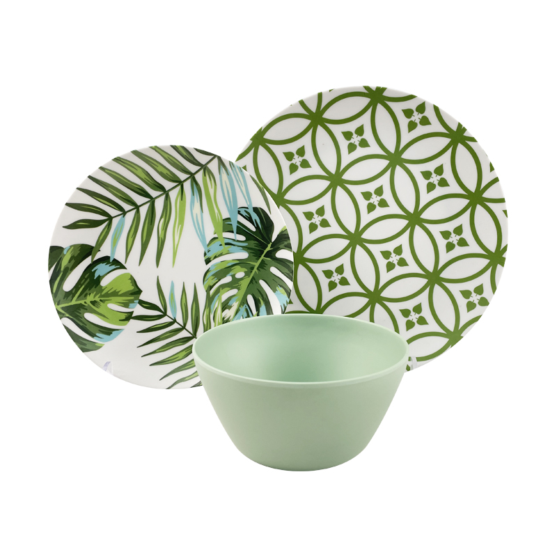 Good Quality Melamine Tableware Set For Restaurant - 15pcs Melamine Dinnerware Sets Dinner Plates Salad Dishes Bowls Cups Service for 5 Leaves Pattern Lightweight – BECO Detail: