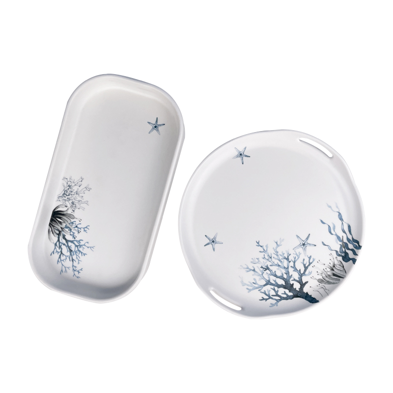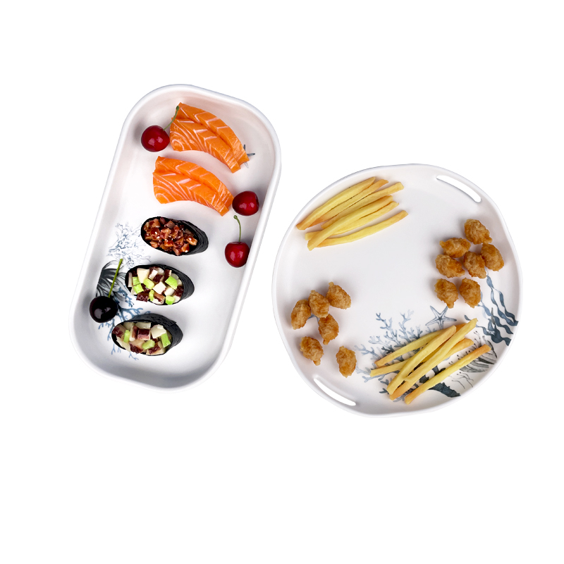 Home Hotel Chinese Restaurant Unbreakable rectangular Plastic Dishes Sushi Plates coral pattern Melamine Plates
