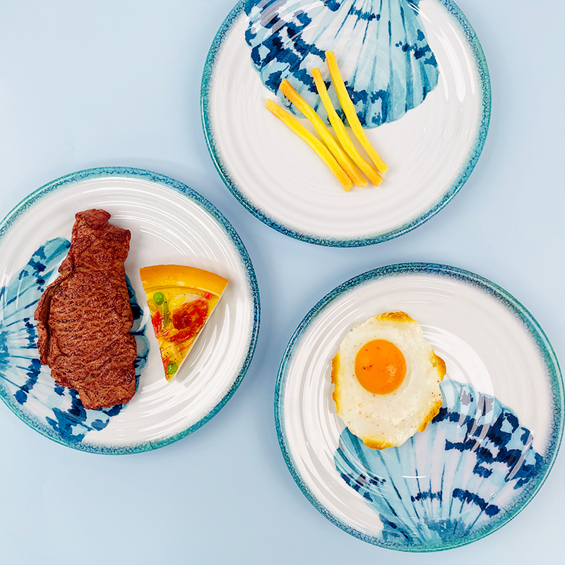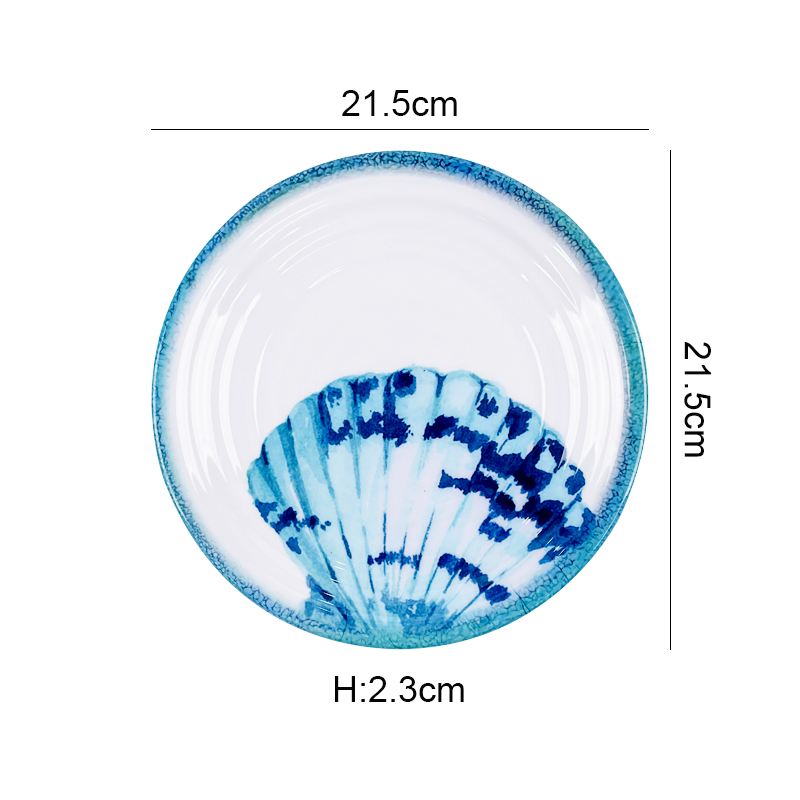 Hot sales melamine ocean series round shape with shell design fruit cake candy plate dinner plates