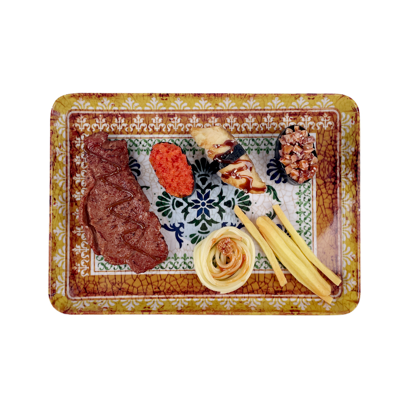 Luxury Delicate White Bottom Petals Rectangle Plastic Fruits Tray Customizable Melamine Tray Rectangle