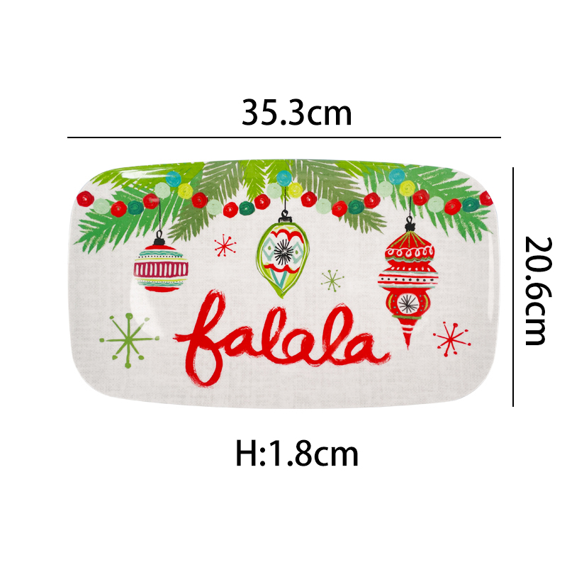 Choose our Christmas Melamine Service Tray to bring joy and elegance to your holiday gatherings. Whether as part of a dinnerware set or as a standalone piece, this tray is ideal for serving everything from appetizers to desserts, making it a versatile and essential item for any festive celebration.