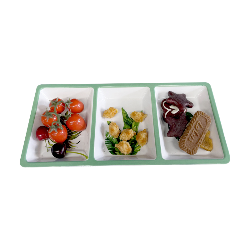 Harga kilang melamin boleh diguna semula dibahagikan peralatan makan segi empat tepat untuk restoran