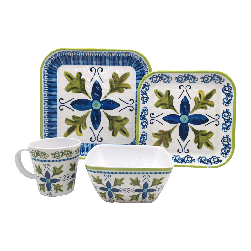 This green decal tableware set u can also change the design ,our design printing method is based on 4 color CMYK printing .all this set can be full color printing .