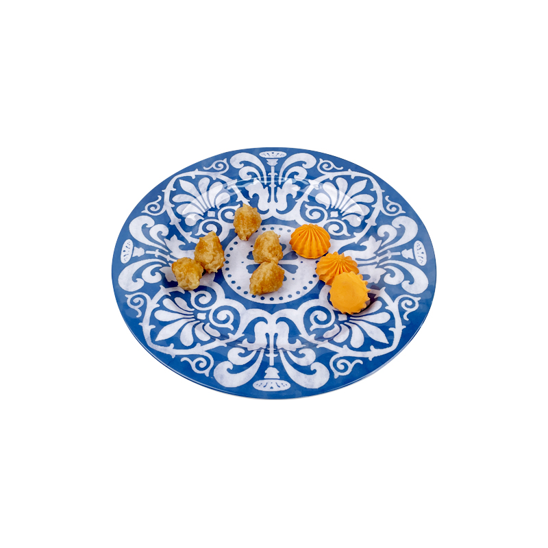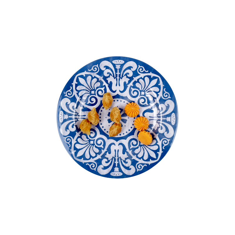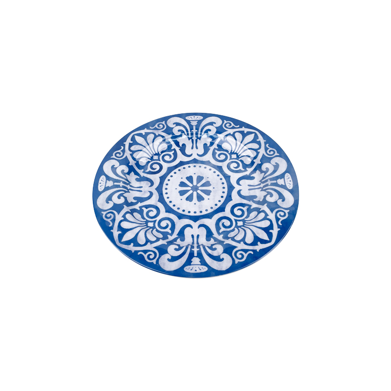 Leter du etter det perfekte serviset som kombinerer stil, holdbarhet og sikkerhet for både restaurant- og hjemmeserveringsbehovene dine? Da trenger du ikke lete lenger! Våre FDA-godkjente, blåmønstrede melaminmiddagstallerkener er her for å revolusjonere serveringstjenesten din.