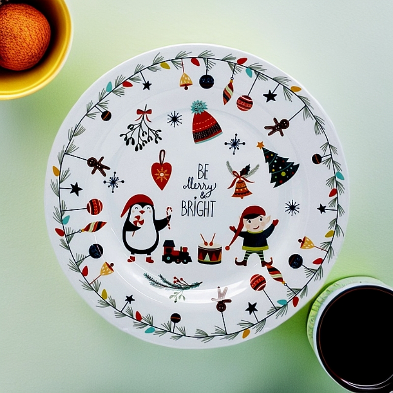 Nordic Christmas Melamine Dinner Plates | Santa Claus & Penguin Decal Tableware for Holiday Parties, Celebrations & Home Decor | Durable & Festive