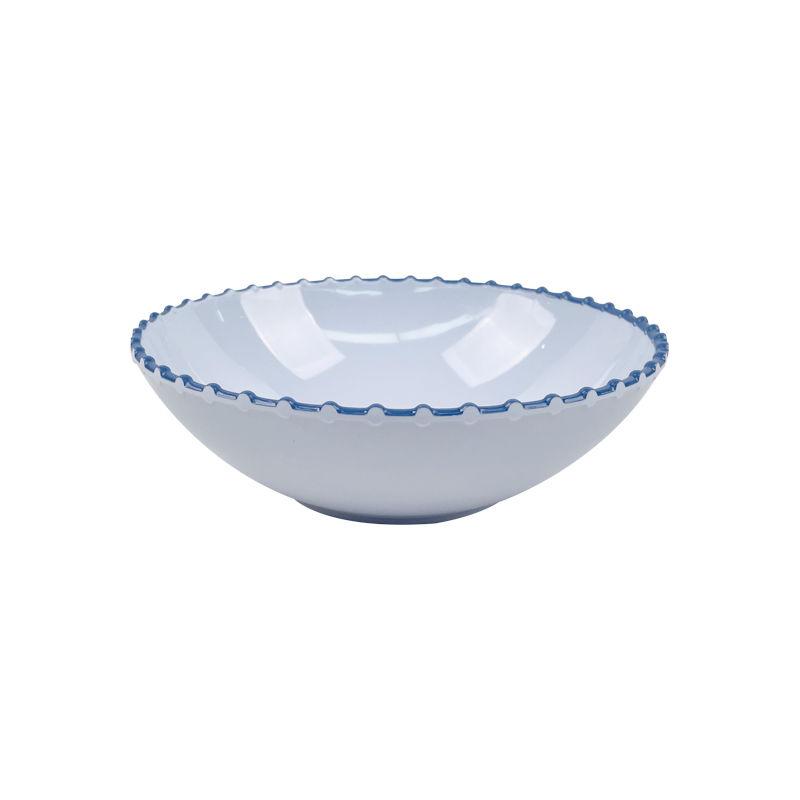 The white pearl rim melamine bowl is an elegant addition to your dining collection, perfect for serving desserts and salads. This dessert salad bowl features a beautiful pearl rim design that adds a touch of sophistication to any table setting. Crafted from high-quality melamine, it is lightweight, durable, and break-resistant, making it ideal for both indoor and outdoor use. As part of the pearl rim melamine bowls collection, it offers a stylish option for various occasions, from casual meals to formal gatherings. The white pearl rim melamine bowls are easy to clean and dishwasher-safe, providing practicality alongside their stunning aesthetic, making them a must-have for any kitchen.