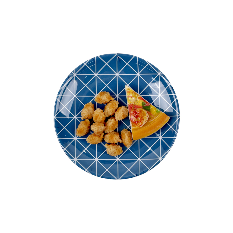 Selling features of blue melamine dinner plates can include: Durability: Melamine dinner plates are known for their high resistance to heat, abrasion, and impact, making them a long-term investment for everyday use. Food safety: Melamine materials are generally free of BPA and other harmful substances, making them suitable for holding and eating food. Aesthetic Design: Blue is a popular color choice that can add visual appeal to a dining scene, enhance the overall beauty of the table and attract attention. Versatility: The design of the dinner plate can have different-sized portions, suitable for holding main dishes, side dishes, sauces, and meeting the needs of various foods. These selling points help customers better understand the advantages and suitable uses of blue melamine dinner plates, enhancing their appeal and competitiveness in the market.
