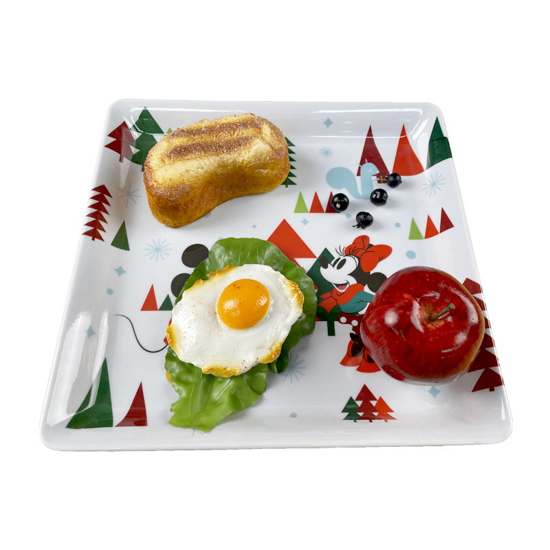 OEM Customized Handmade Mug - 8 inch Christmas Pattern Modern Style Customize Reusable Square Plate Desert Dish Melamine Hard Plastic Desert Snack Side Plate – BECO Detail: