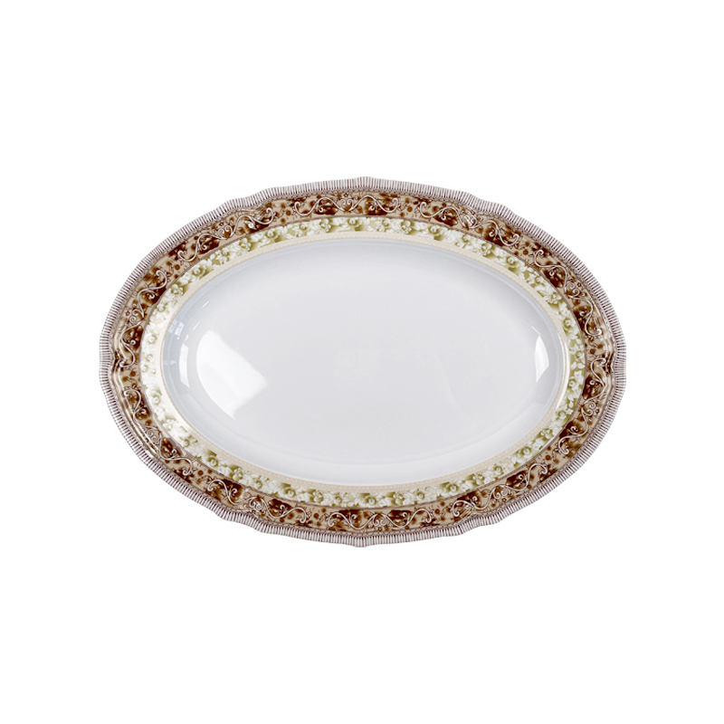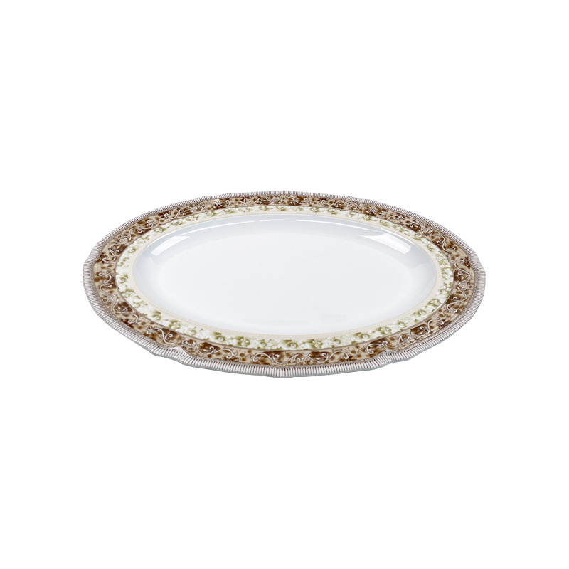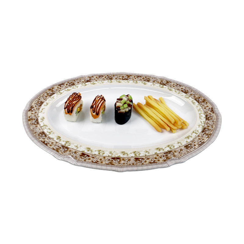 Reasonable price for Sublimation Blank Plate - 12 Inch Melamine Oval Plate With Golden Pattern Islamic Plastic Plate For Dessert Salad Appetizer Restaurant Plate – BECO Detail: