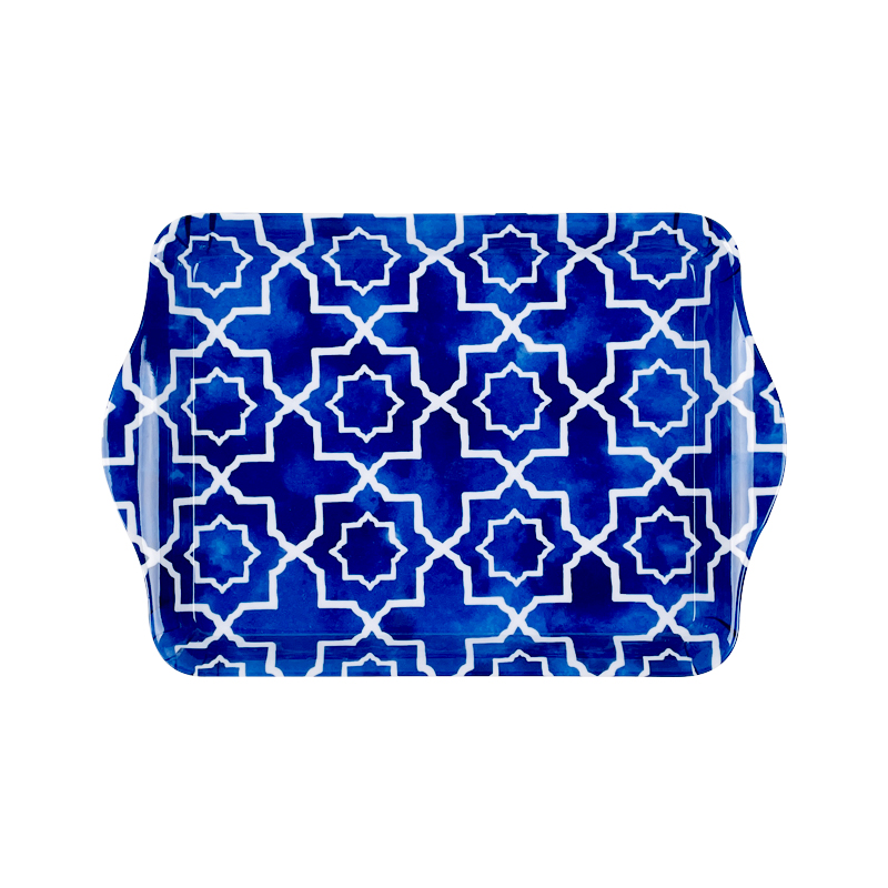 This melamine serving tray set features custom designs, available in large sizes, making it ideal for serving food at home, buffets, or events. Crafted from unbreakable melamine, these trays are lightweight yet sturdy, ensuring long-lasting use. The fancy melamine trays come with convenient handles, making them easy to carry and perfect for both indoor and outdoor serving. Available at factory price for wholesale, this tray set is a cost-effective solution for adding elegance to any dining or buffet setting.