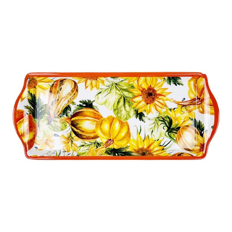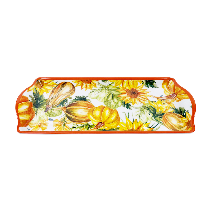 Rectangular Melamina Tray with Handles Thanksgiving and Fall Painted Pumpkin Design Melamine Serving Tray