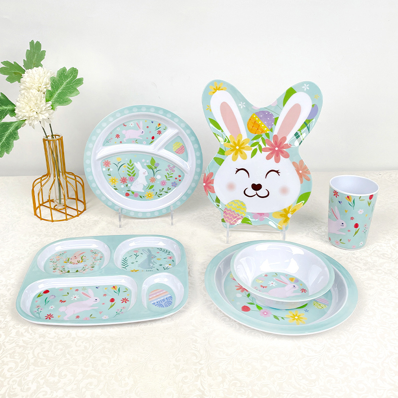 Desene animate drăguțe BPA fără melamină Iepuraș de Paște Design Set de tacâmuri pentru copii Farfurie pentru copii Farfurie de masă